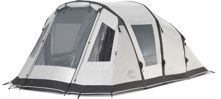 De Bardani AirWave 230 opblaasbare tent is een sportieve en rechtwandige tent met veel binnenruimte. De Bardani opblaasbare tent is snel en eenvoudig op te zetten door middel van het opblaassysteem met luchtslangen. De tent is geschikt voor maximaal drie personen.MaterialenDe buitentent is gemaakt van Polyester Protec UV50 met zilvercoating aan de binnenzijde. De binnentent is gemaakt van ventilerend polyamide. De tent is voorzien van een PE kuipgrondzeil, een volledige horrengaas deur en horrengaas aan de achterkant. De deuren zijn voorzien van zware 8 mm ritsen en de Quick fix reflecterende scheerlijnen zijn voorzien van alu stoppers. De tenthoeken hebben stevige spanbanden.TechniekenDe tent heeft een permanent “Air Vent” ventilatiesysteem aan de achterkant van de tent voor optimale ventilatie. Het Climate Control Systeem zorgt daarnaast voor extra koelte. De naden zijn getapet en er is sprake van een stroomkabel doorvoer systeem met rits aan beide zijden. De gordijnen bevatten een variosysteem waarmee u traploos kunt verduisteren.IndelingDe oppomptent heeft een extra lange slaapcabine van 230 cm waar maximaal drie personen kunnen slapen. De slaapcabine is extra donker voor meer slaapcomfort. De tent wordt geleverd met luifelstokken om de deur uit te zetten als luifel voor extra schaduw.
