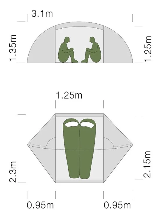 De Orion II van Exped is een ruime dwarsslaper voor twee personen. De binnentent is voorzien van een dubbele deur met No-See-Um muskietengaas. De tent heeft veel mogelijkheden om hem goed te laten ventileren.