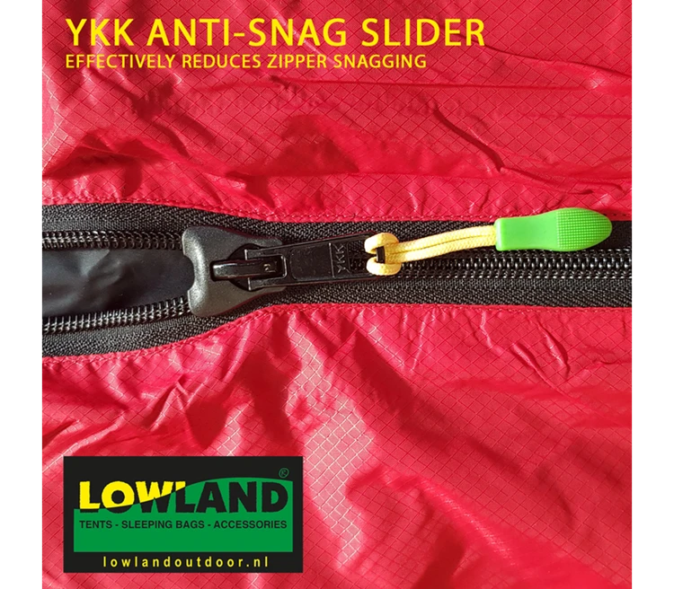 Licht, klein en compact, dat is LOWLAND OUTDOOR® Ranger Lite. Dit is een ideale slaapzak voor de fanatiekere outdoor liefhebber die bijvoorbeeld met een rugzak meerdere overnachtingsplekken aandoet. De buitentijk is gemaakt van Ripstop Nylon en de binnentijk van Nylon Soft Touch. Dat betekent: lichtgewicht (slechts 1095 gram!) dit houdt je lekker warm tot ongeveer het vriespunt. Het materiaal is waterafstotend en slijtvast aan de buitenkant en zacht en warm aan de binnenkant. De binnentijk van nylon neemt sneller dan katoen je lichaamstemperatuur aan. Een aanrader wanneer pakruimte en gewicht belangrijk zijn! Een 2-richtingrits zorgt er voor dat je twee slaapzakken knus aan elkaar kan ritsen; maar wordt het je toch te warm, dan kan je de slaapzak aan je voeten losritsen en krijg je extra ventilatie.