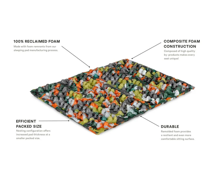 Chipper is meer dan een lichtgewicht en gemakkelijk in te pakken zitkussen, het is ook een grote stap in duurzame productie. Volledig gemaakt van hergebruikt en opnieuw gevormd PE-schuimafval van onze slaapmattenproductie, verminderen we onze voetafdruk en maken we een leuk, uniek en uiterst veerkrachtig product. De ontworpen contouren geven een buitenmaats gevoel van soepelheid en beschermen tegen koude oppervlakken. Chipper is een betaalbare, milieuvriendelijke en veelzijdige metgezel voor backpacken, tuinieren, reizen, festivals, dagtochten en sportevenementen.