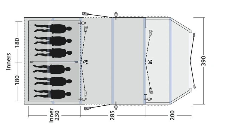 Sfeer, volop ventilatie, vloerruimte en een grote stahoogte dankzij de steile wanden: de luchtige Outwell Wood Lake 6ATC met drie zones is een waar genot. Deze opblaasbare tent biedt plaats aan zes personen in twee ruime slaapcabines en is ideaal voor gezinnen of om te delen met vrienden. In de grote leefruimte, bijzonder goed geventileerd door gaasdeuren aan beide zijden, kunt u volop genieten van het campingleven. Met zijn gestroomlijnde Scandinavische ontwerp en gladde profiel is hij gemakkelijk op te zetten en in te pakken. Of het nu regent of zonnig is, u gaat snel de uitstekende prestaties van de duurzame technisch katoenen stof waarderen, vooral bij heel warm weer. Bovendien zult u genieten van de veelzijdigheid van de praktische leefruimte met een natte zone aan de voorkant, met een afneembaar grondzeil, om spullen en kleding op te bergen na uw avonturen in de buitenlucht.