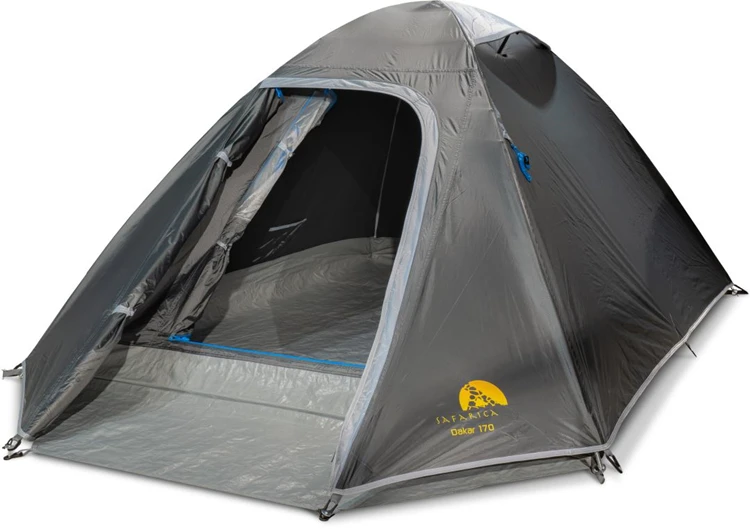 De Safarica Dakar 170 koepeltent is een compacte 2-persoons tent met bagageruimte. De tent is zeer geschikt als bijzettent. Deze koepeltent van Safarica is goed bestand tegen Uv-straling dankzij de buitentent die gemaakt is van polyester met een PU coating. De ademende binnentent en het permanente ventilatiesysteem zorgen voor extra slaapcomfort. Daarnaast blijft de tent goed droog door het waterdichte grondzeil en de getapete naden.